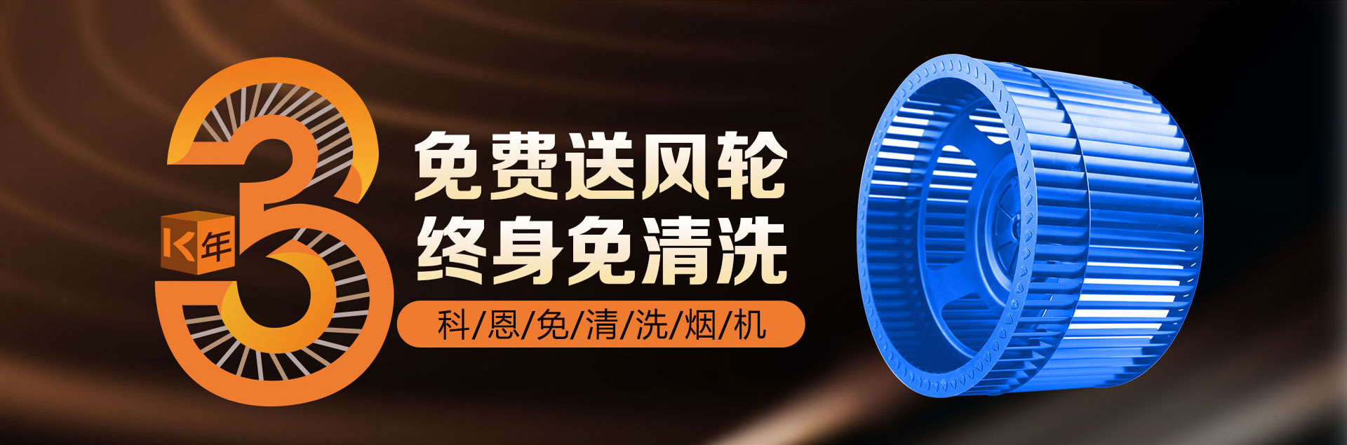 科恩電器行業(yè)率先提出3年免費(fèi)送風(fēng)輪服務(wù),徹底解決殘余油脂油污問題,真正實現(xiàn)煙機(jī)終身免清洗!
