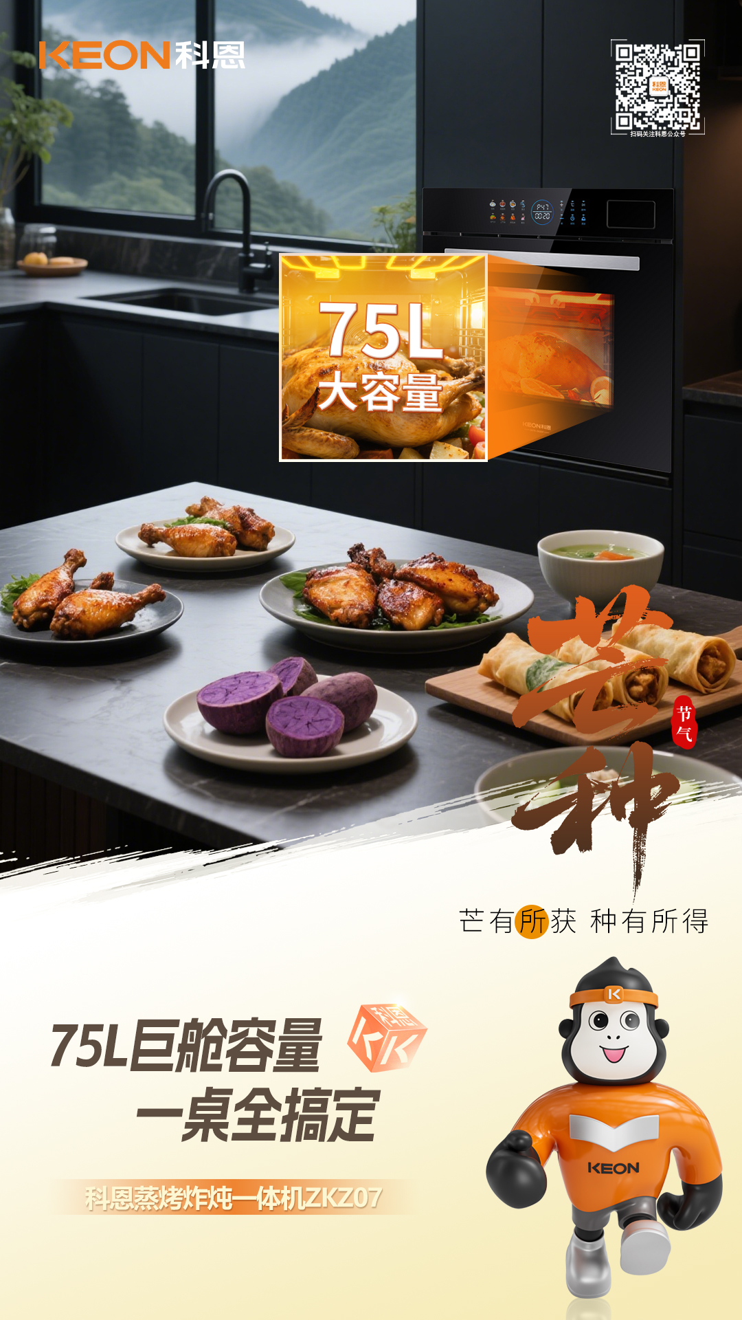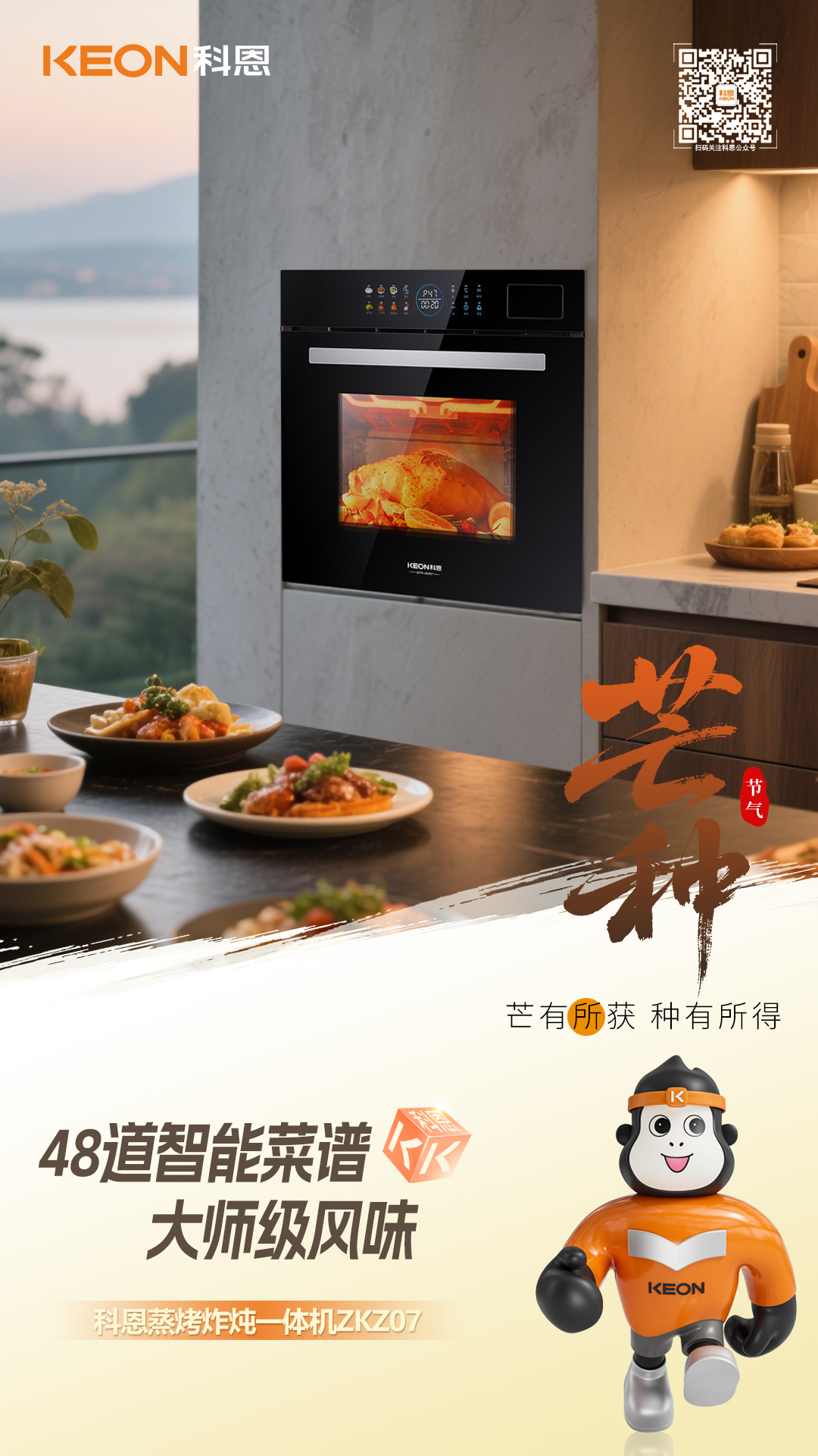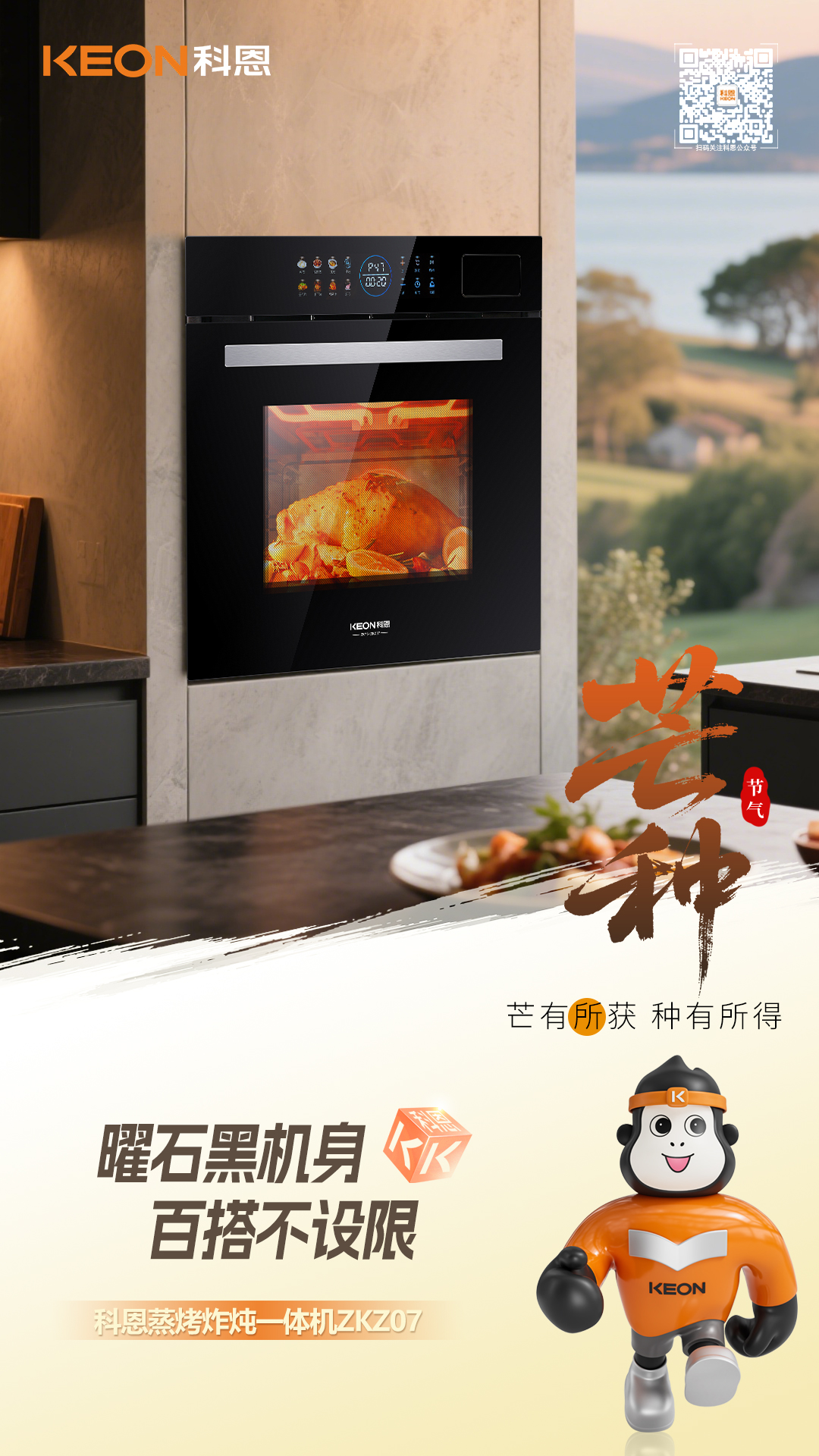 仲夏蟬鳴起,新麥入倉時。芒種麥香濃,廚房煥新章。科恩匠心推出ZKZ07蒸烤炸燉一體機,用科技重新定義烹飪藝術(shù),讓每一道菜都成為時令佳作,為家人帶來舌尖上的驚喜!