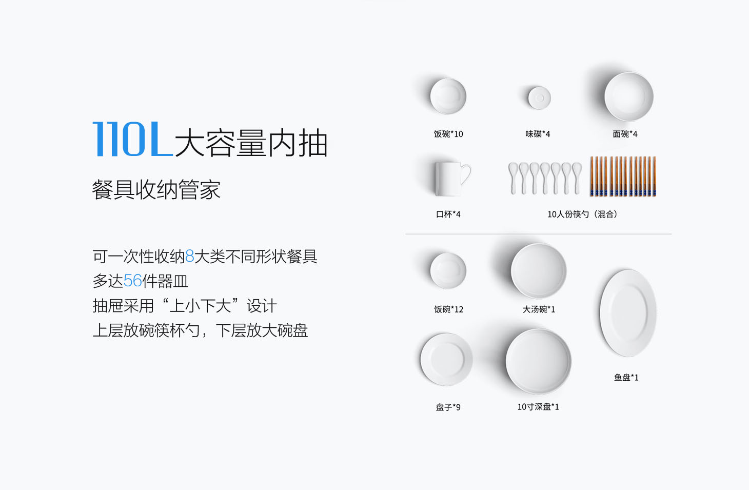 - 110L大容量?jī)?nèi)抽,深度從470mm增加到505mm。