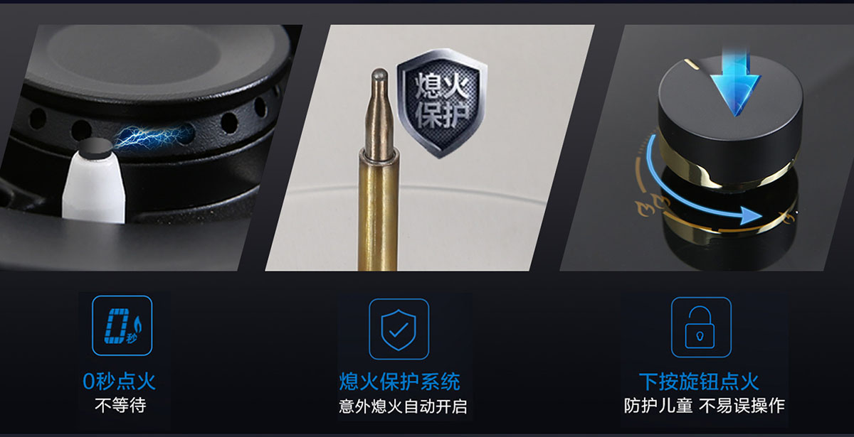 - 自帶童鎖按壓式點火旋鈕點火裝置,有效避免兒童意外開啟