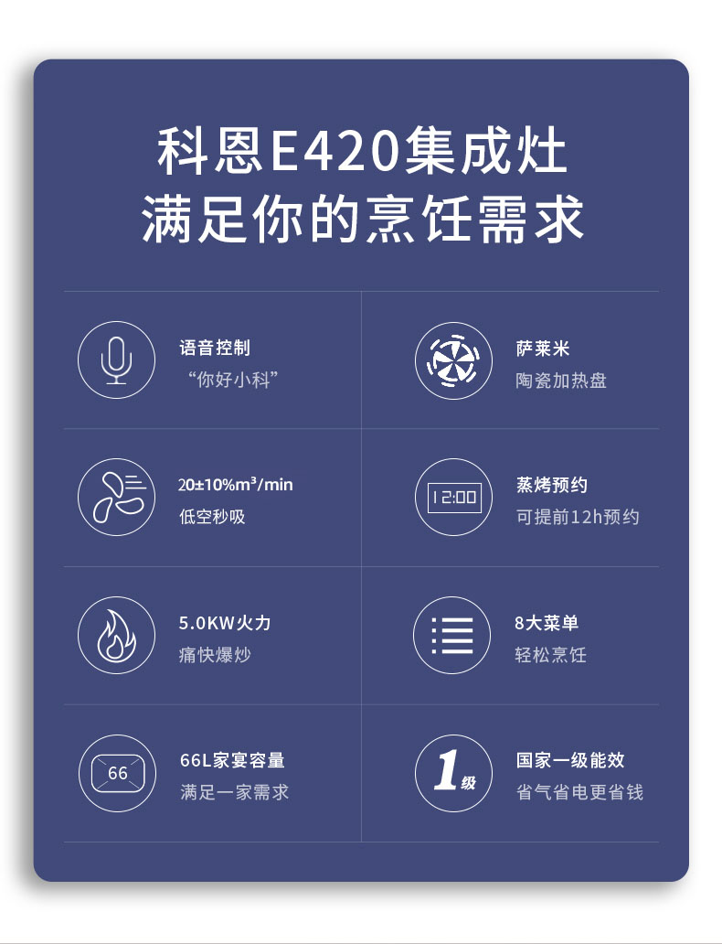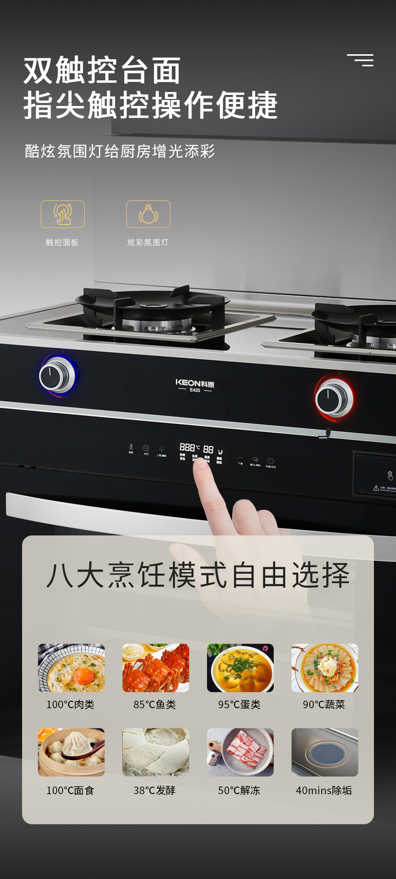 - 語(yǔ)音喚醒,智能鮮蒸,科恩E420智能語(yǔ)音集成灶
