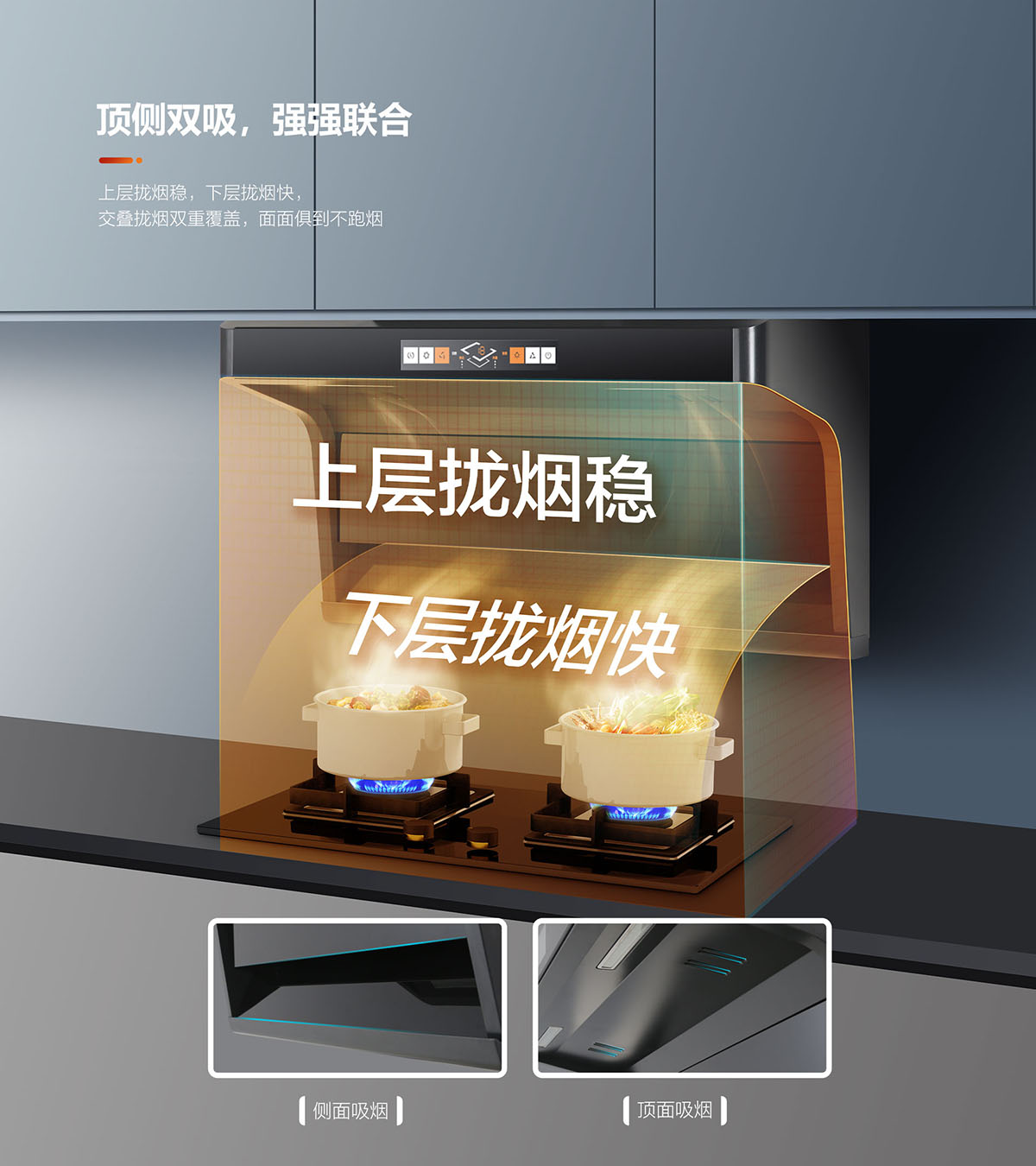 - 智能體感操控,揮手凈煙,0觸碰隔空操控,下廚無需手忙腳亂找按鍵