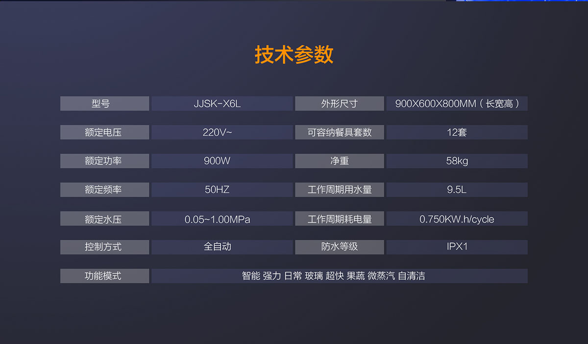 產(chǎn)品型號:JJSK-X6L洗碗機功率:900W