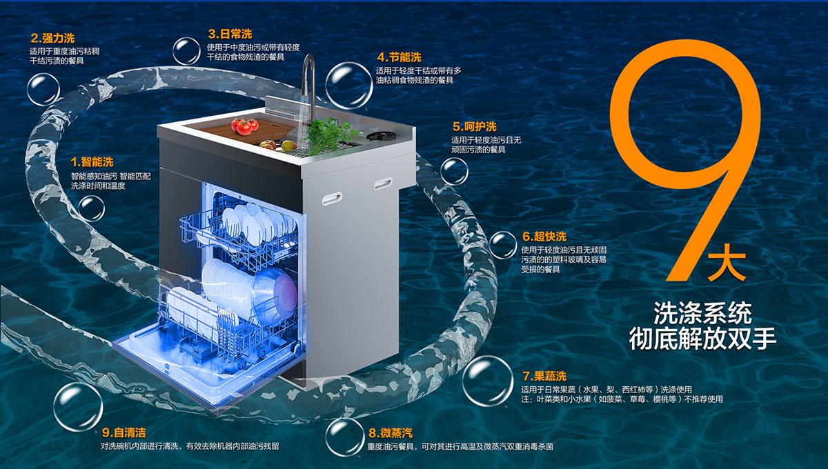 - 大洗滌系統(tǒng),滿足洗碗、洗果蔬各種需求