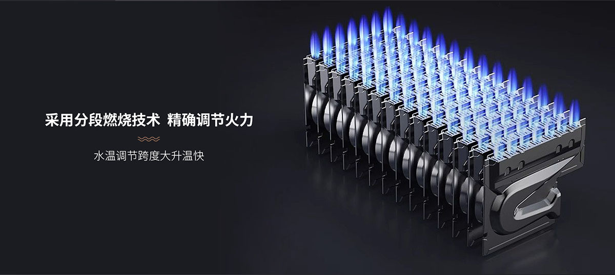 - 采⽤分段燃燒技術(shù),⽔溫調(diào)節(jié)跨度大,升溫快