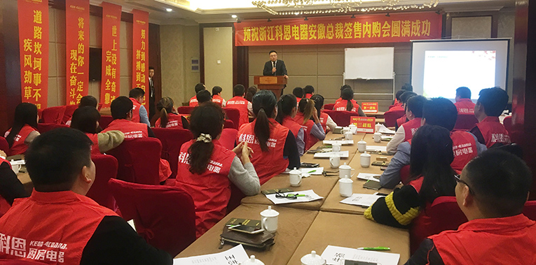 11月9日,一群充滿活力和激情的科恩安徽經(jīng)銷商以及優(yōu)秀店長匯集合肥麥肯希酒店,參加為期兩天的科恩電器安徽總裁簽售內(nèi)購會培訓(xùn)大會暨啟動儀式??贫麟娖鳡I銷精英與安徽經(jīng)銷商家人歡聚一堂,百余人共同見證了第一屆科恩電器總裁簽售會的盛大啟動。